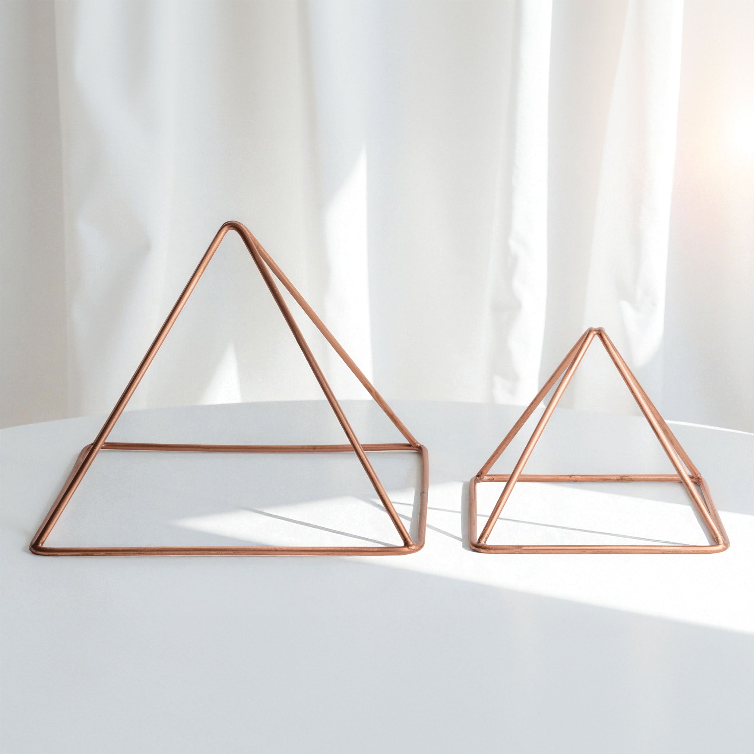 Door haar royale formaat creëert deze piramide een krachtig, helder energieveld dat je hele omgeving verzacht en ordent. Plaats haar in je woonkamer, werkruimte of meditatiehoek: de piramide werkt als een stabiel ankerpunt dat ruis dempt en je aandacht dieper laat landen. Dankzij de heilige geometrie ontstaat een natuurlijk vortexpunt van focus en balans; massief koper brengt warmte, doorstroming en geaarde rust.