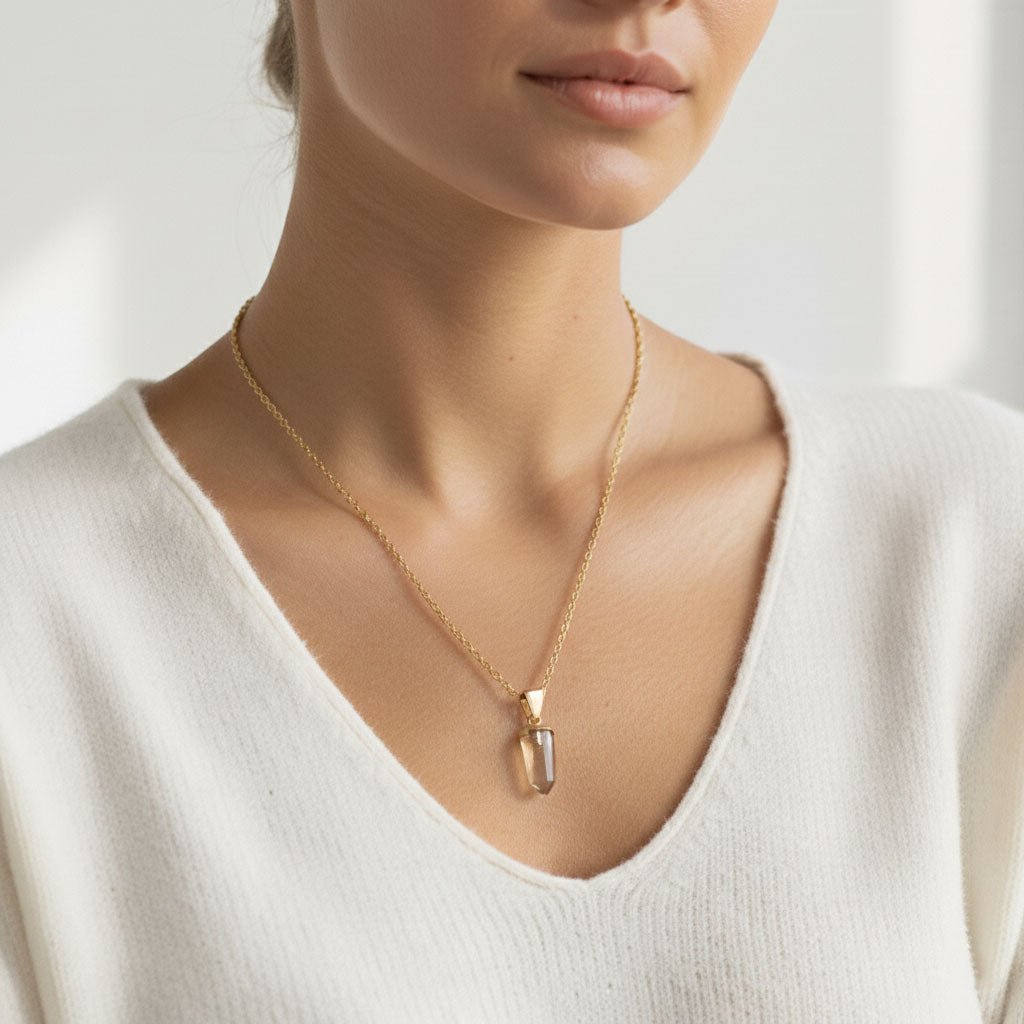 Een zonnige hanger van natuurlijke, onverhitte citrien in een elegante vergulde ketting. De heldergele tint van citrien vangt het licht en herinnert je aan de kracht van optimisme, overvloed en innerlijke vreugde: een sieraad dat elke dag een beetje lichter maakt.