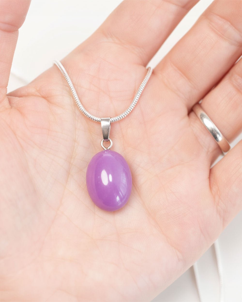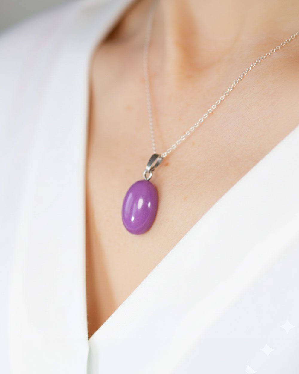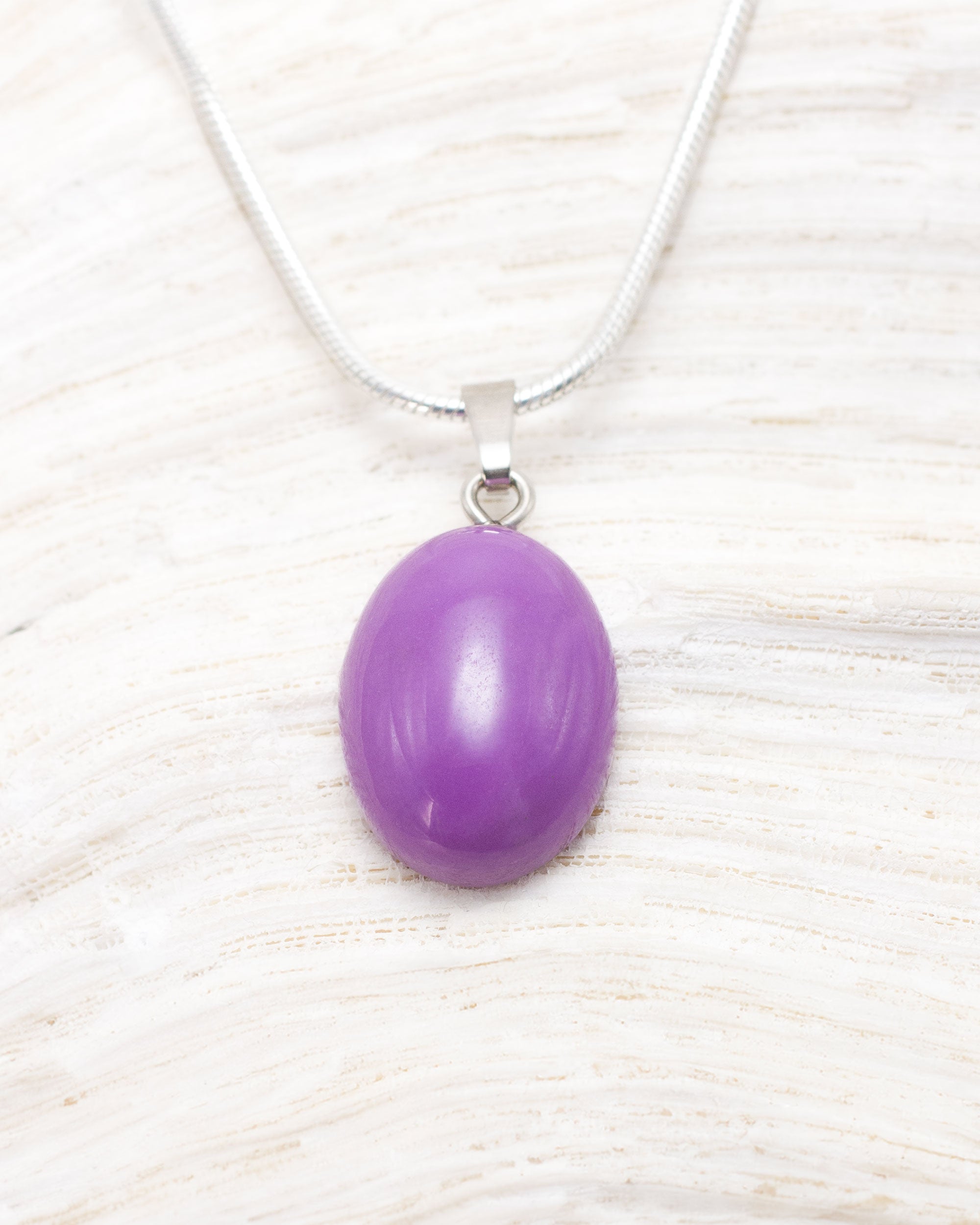 Mooi hangertje van de relatief onbekende steen fosfosideriet. Dit exemplaar is van uitzonderlijke kwaliteit en heeft een intense paarse kleur die je zelden ziet bij fosfosideriet, waar de tint vaak wat fletser is. De hanger bevat een prachtige, cabochon geslepen steen van AAA-kwaliteit, met een zilveren oogje en een afmeting van 20mm x 14mm. Fosfosideriet wordt gevonden in Argentinië, Chili en Peru en staat bekend om zijn diepe verbinding met het hart- en derde oogchakra.