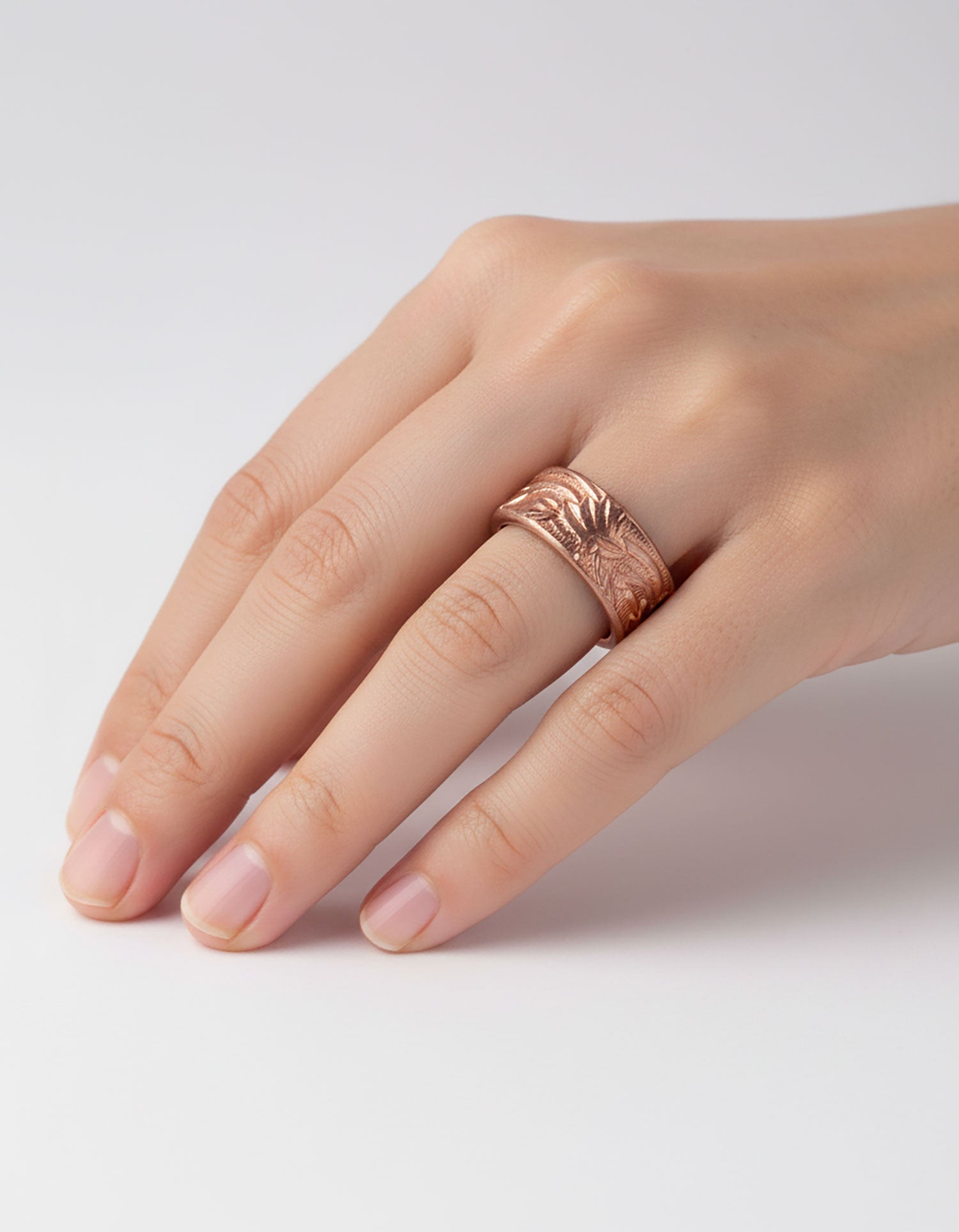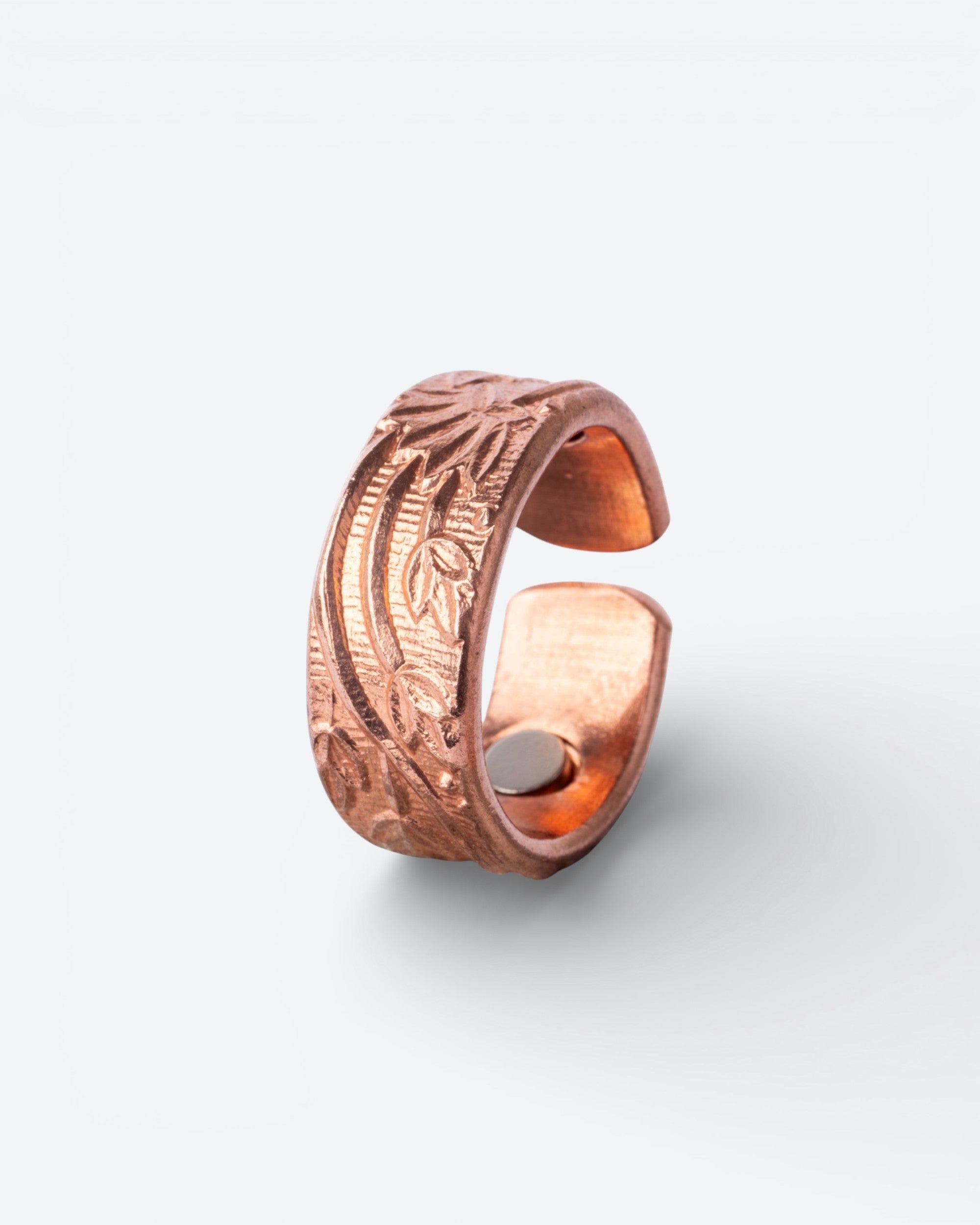 Deze verstelbare ring is gemaakt van puur koper met magneten aan beide uiteinden. De ring heeft een versierde afwerking.
