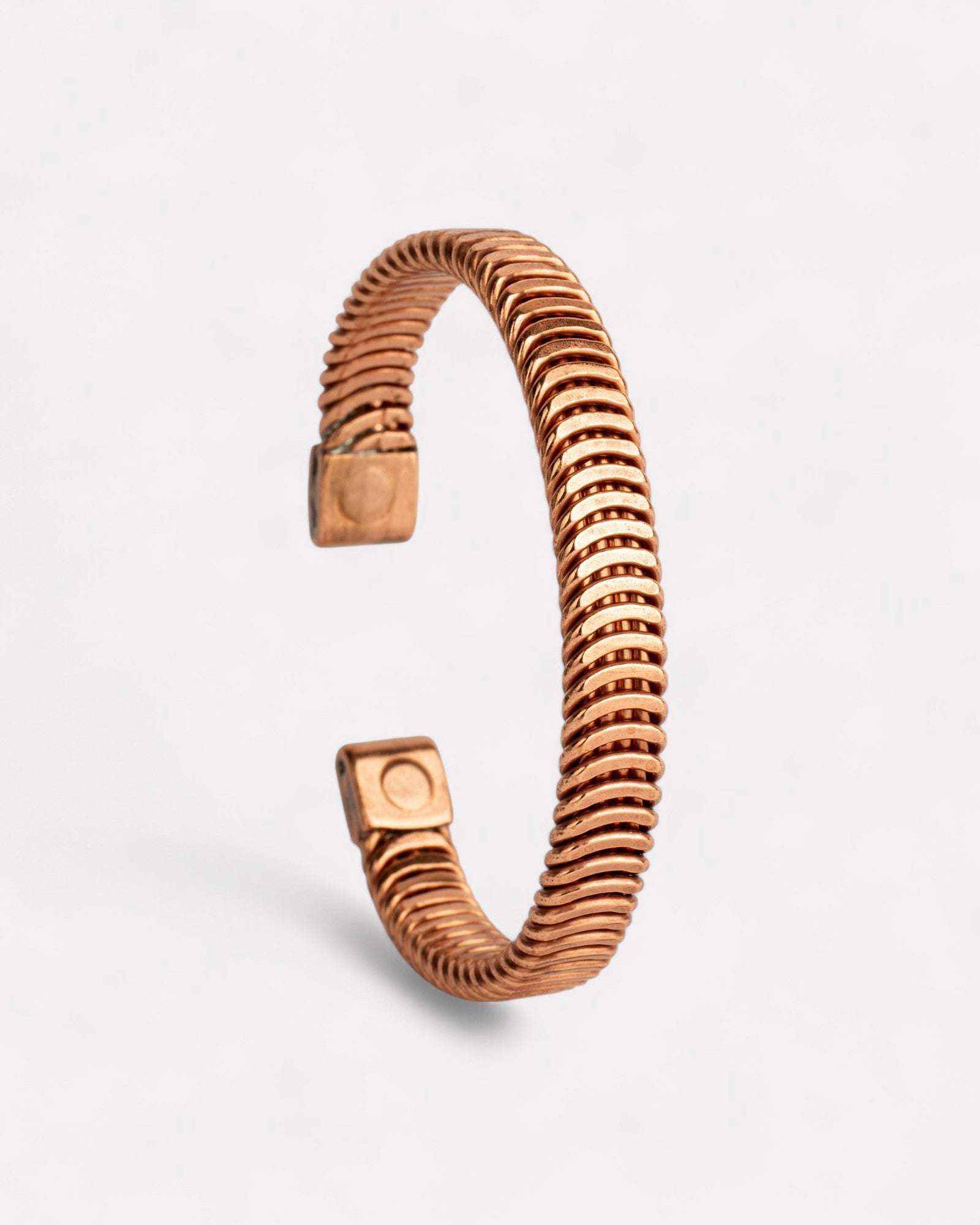 Verfijnde koperen magneet armband met herringbone design voor de kleine pols.