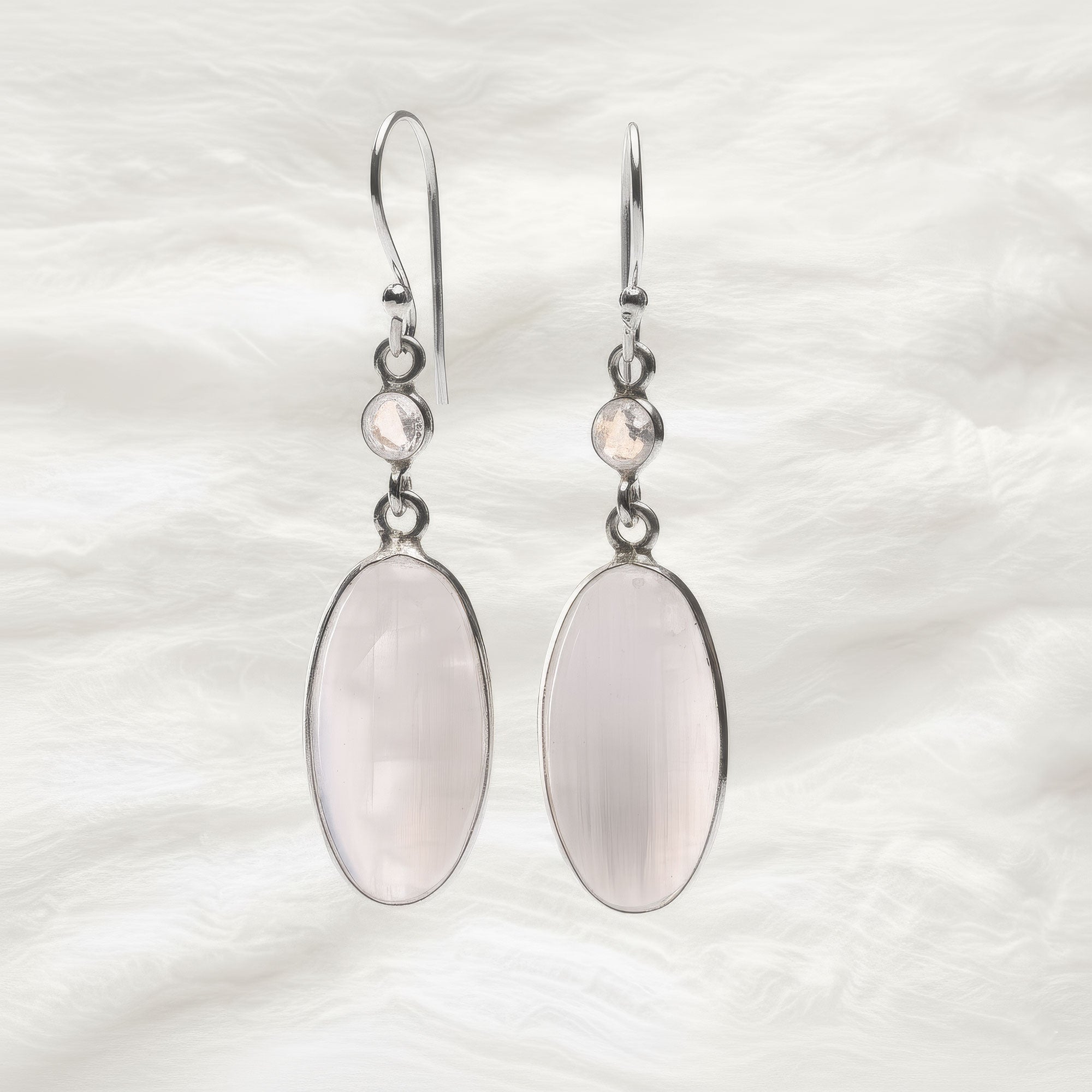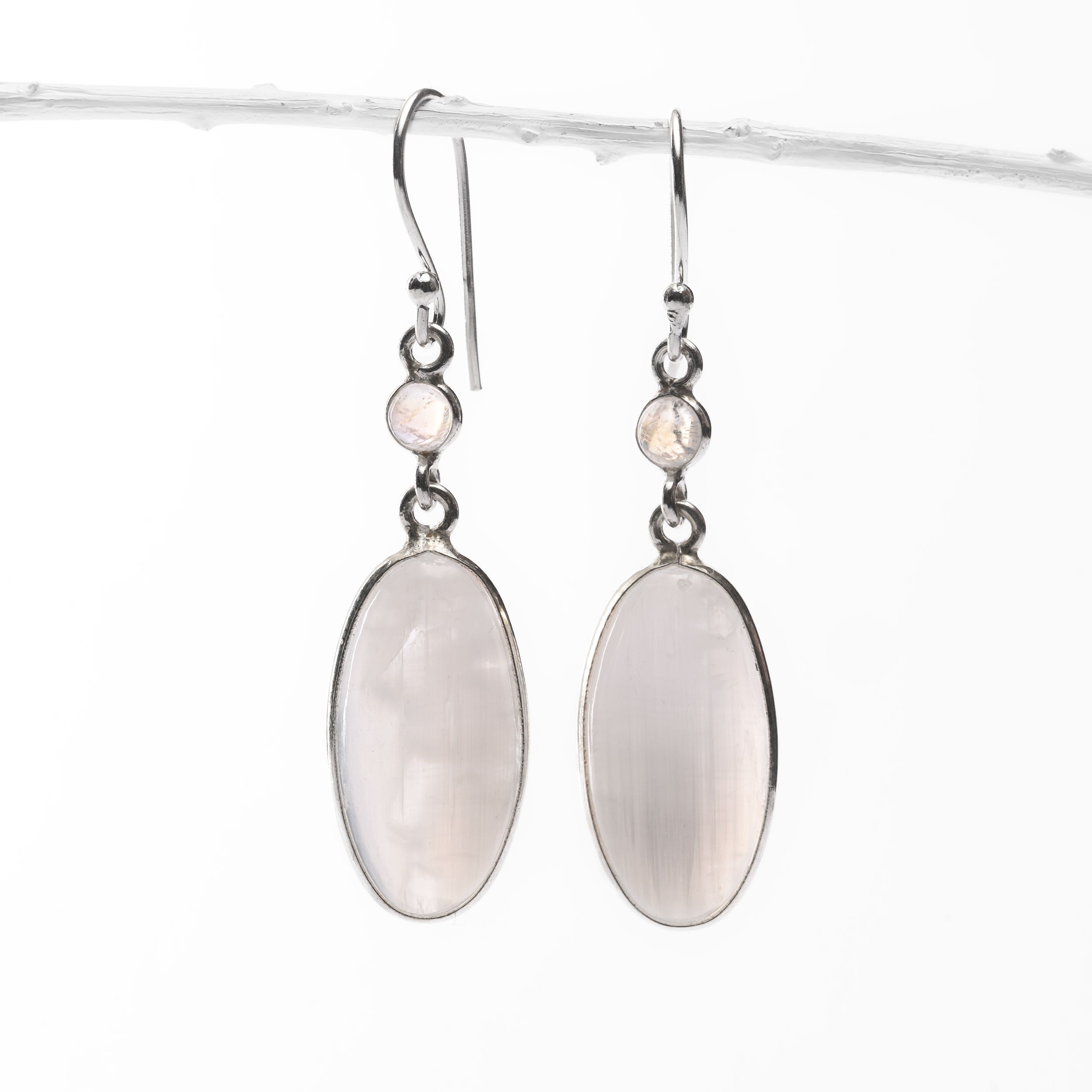 Zilveren Oorbellen met Seleniet & Maansteen – Licht, Zuivering en Vrouwelijke Energie