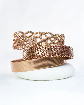 Kupfer besticht durch seinen warmen Glanz, seine natürliche Ausstrahlung und seinen zeitlosen Charakter; ein Kupferarmband fühlt sich massiv und rein an und ist ein bedeutungsvolles Schmuckstück. Menschen wählen Kupfer, um Ausgeglichenheit zu finden, Spannungen abzubauen und mit ihrer eigenen Energie in Verbindung zu bleiben.