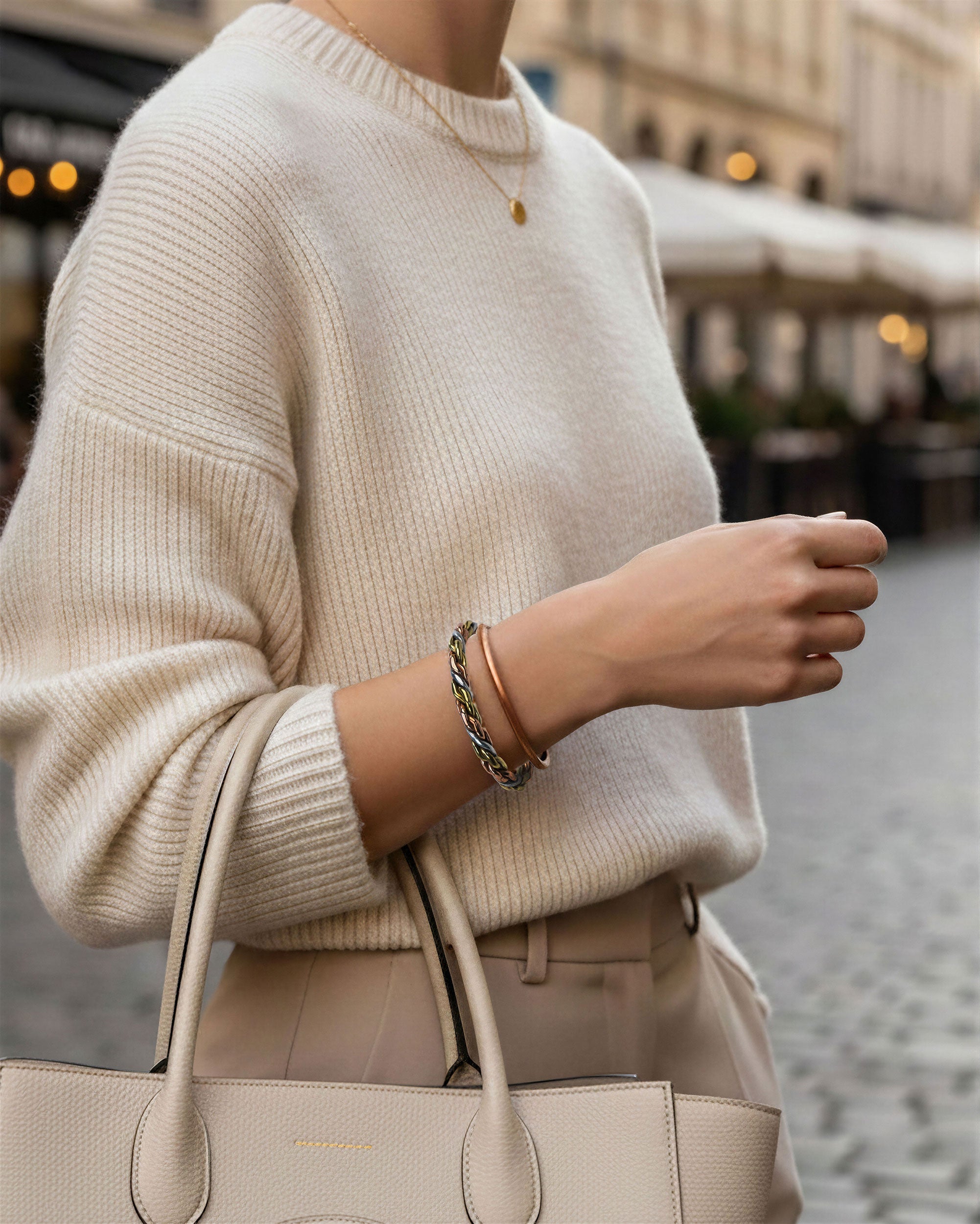 Ce bracelet puissant et élégant est fabriqué en fil de cuivre massif 12SWG, associé à du laiton et de l'aluminium pour un look unique. Sa finition de haute qualité comprend deux puissants aimants en néodyme à chaque extrémité.