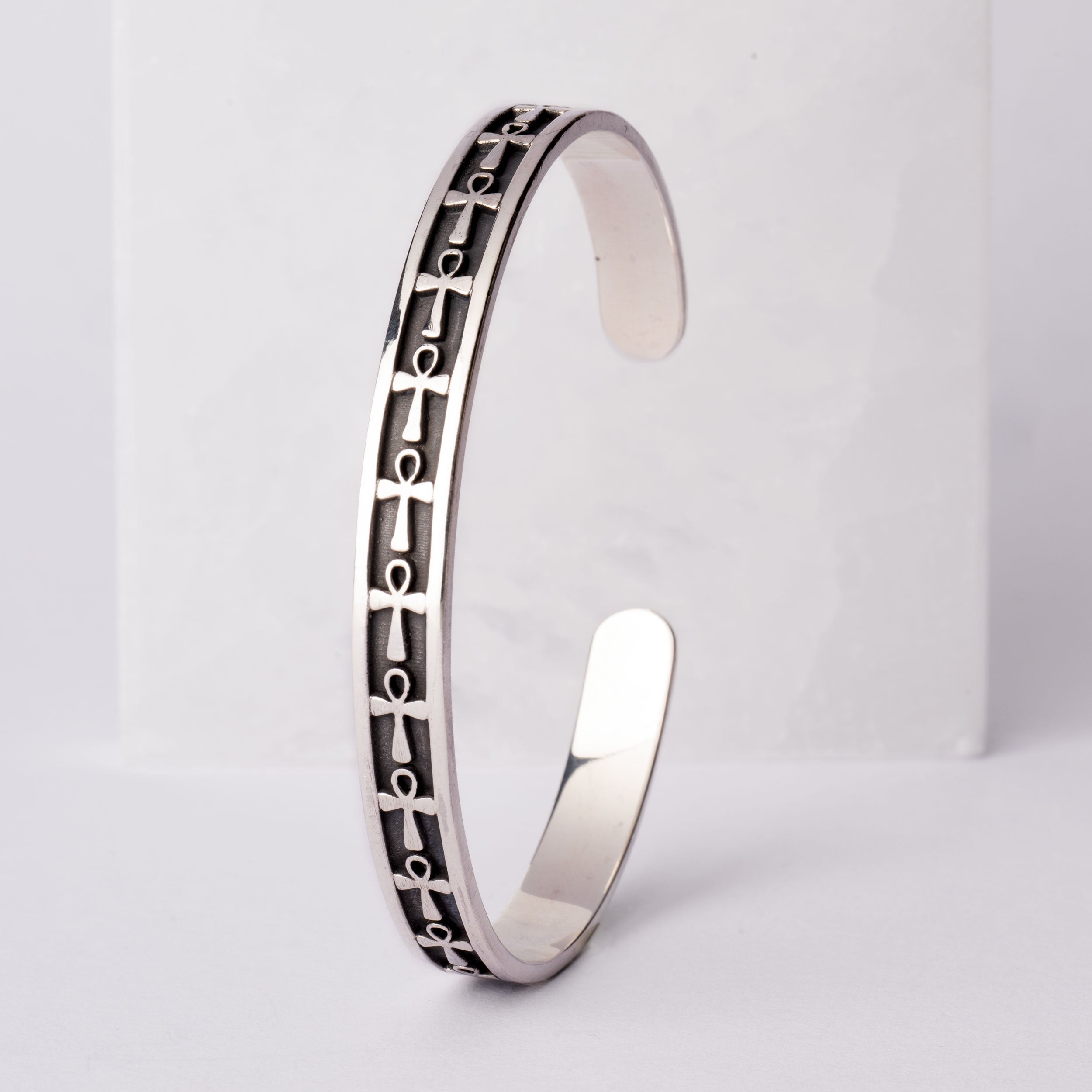 Bracelet Ajustable en Argent avec Symbole Ankh – Connexion Éternelle et Force Vitale