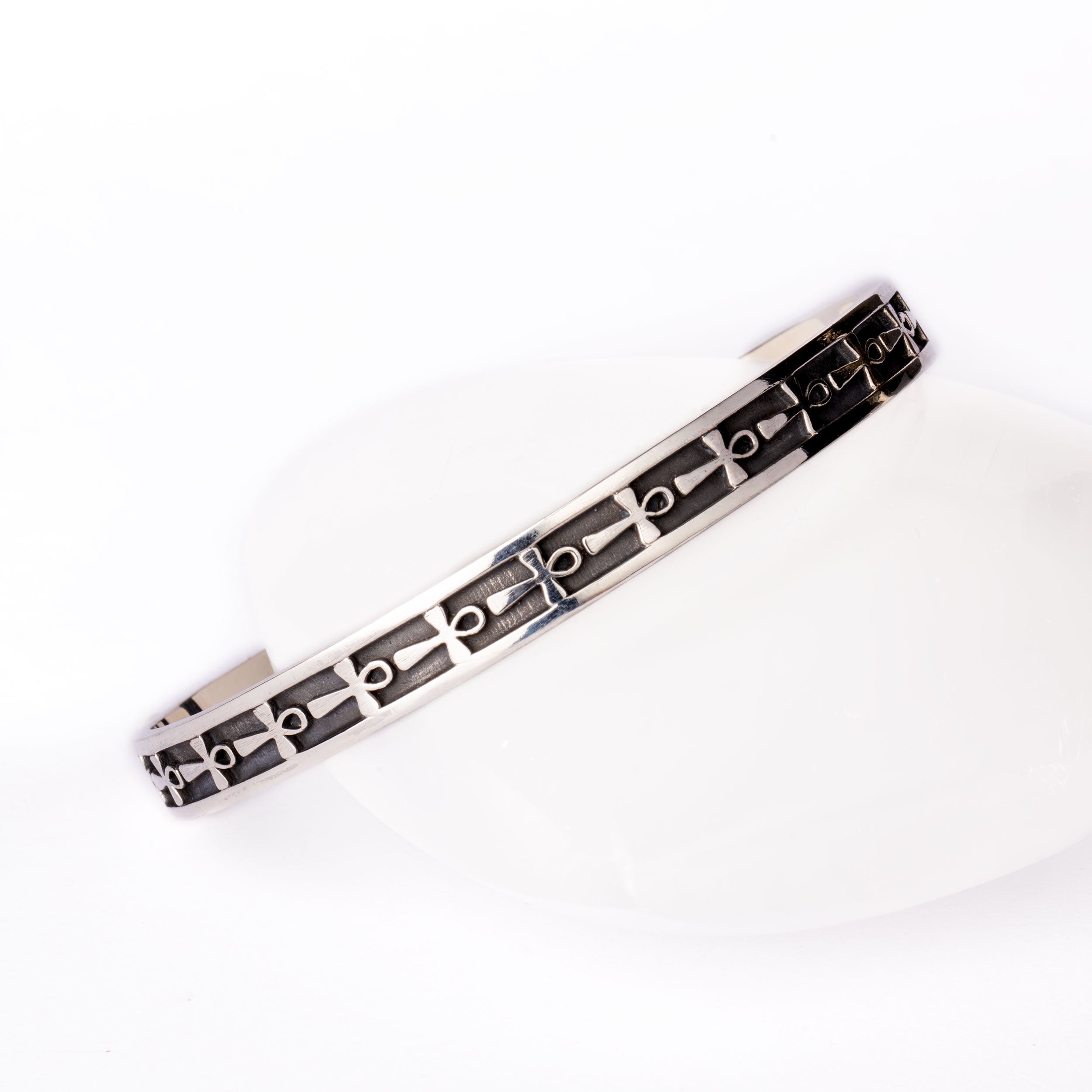 Ce magnifique bracelet en argent est un bijou intemporel. Il est orné du puissant symbole Ankh, représentant la connexion éternelle et la force vitale.